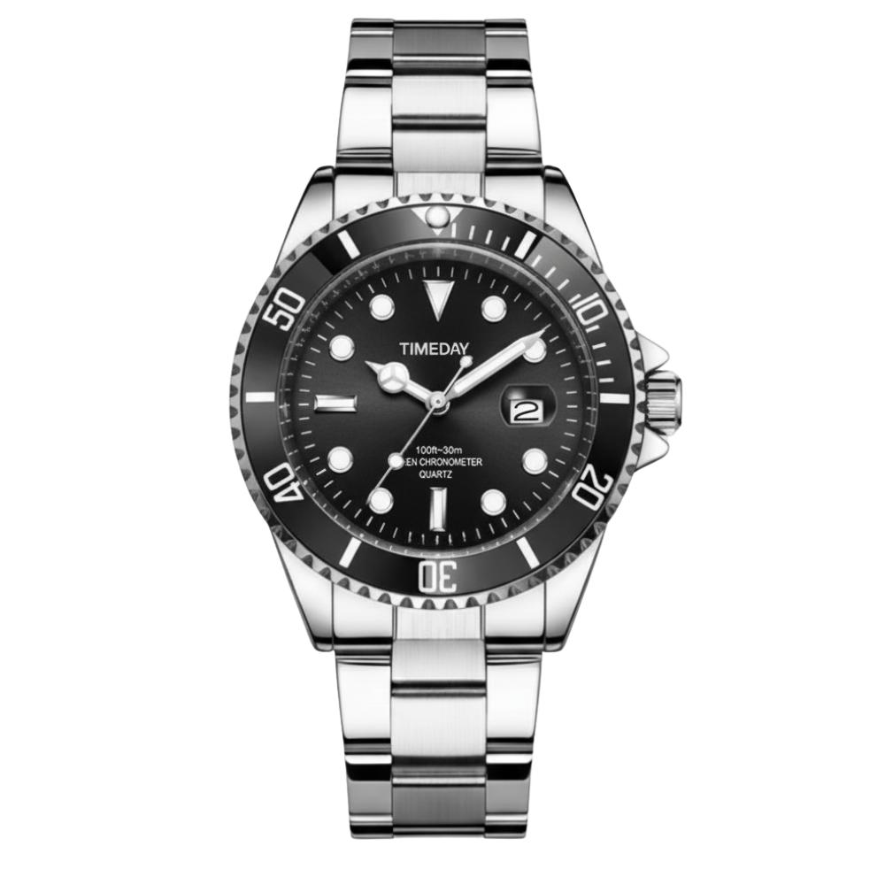 Ceasul Timeday Black Luxury este un model rafinat care combina eleganta stilului business cu rezistenta necesara unui accesoriu sport. Fabricat din otel inoxidabil, acest ceas barbatesc ofera durabilitate si un aspect premium. Mecanismul quartz asigura precizie constanta, iar afisajul analogic include functii de zi si data pentru un plus de practicitate. Carcasa cu diametrul de 41 mm si grosimea de 12 mm, este protejata de un geam din sticla, oferind un design modern si echilibrat. Cu o rezistenta la apa de pana la 3 BAR, ceasul este potrivit pentru activitatile zilnice, pastrand in acelasi timp un stil elegant si versatil.
